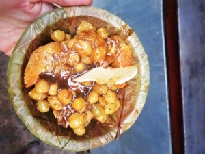 And onto the snacks! First stop was for tikki chola and dahi bada. A little bit sweet and a little bit (okay, a lot a bit) fried, tikki chola is a spicy, delicious snack made from fried chick pea cakes, and smothered in yogurt and tamarind chutney. It was like a flavor pinball machine: sweet, tangy, savory, crunchy, soft, crispy… sensory overload. Play again!