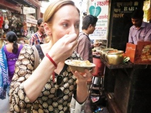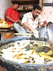 We started at Lassiwala, a hugely popular spot, with lines of locals five deep, reaching over one another to turn in their coin for the next lassi. The gentlemen work tirelessly, scooping, stirring and spinning liquid perfection that is then poured into a ceramic cup (the Indian, eco-friendly disposable ware.) Like a tangy creme brûlée in gulpable form, its flavor is enhanced by the texture and earthiness of drinking straight from the ceramic cup. A truly life-altering lassi!