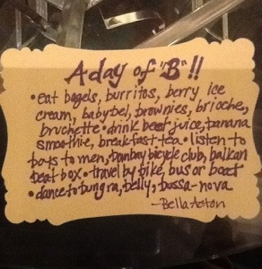 Today’s challenge seemed like easy, breezy fun, but I actually learned quite a valuable lesson from focusing my day on the letter “b” (in honor of the beautiful and brilliant Bella.)